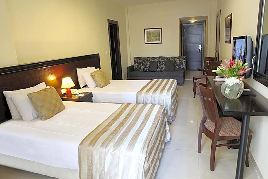 Includes TV and bathroom.